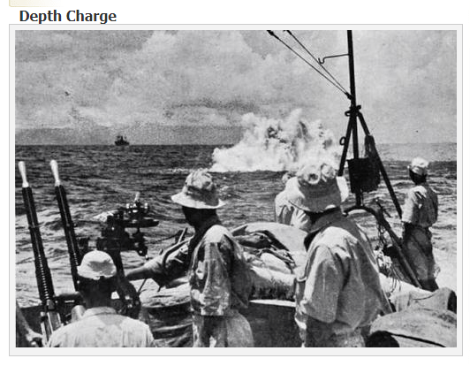 Imperial Japanese Navy light Crusier using Depth Charges against an American submarine, South Pacific 1942 H/T ww2incolor