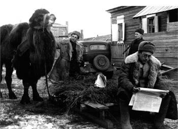 The 308th Rifle Division used a Bactrian camel called “Kuznechik”, Russian for “grasshopper”, for transport of food and other equipment. Kuznechik followed this mostly Siberian unit all the way to Berlin, where his handler taught him to spit on the ruins of the Reichstag building.
