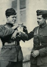 1. Gunner with the regimental cat in a trench in Cambrin, France, February 6th, 1918.  2. Officers of the U.S. 2nd Army Corps with a cat discovered in the ruins of Le Cateau-Cambrésis 3. Trench cat, Gallipoli Peninsula, 1915