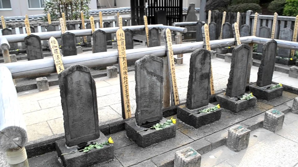 Sometime later the Satsuma man who had mocked and spat on a drunk visited Ōishi Kuranosuke’s grave and apologized, that he had ever doubted the heart of a samurai. And then he bared his belly to the blade and committed seppuku, right then and there. He too went to his rest Sengaku-ji shrine, along with the the 47 Rōnin.