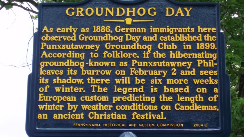 A marker for Groundhog Day describes the process