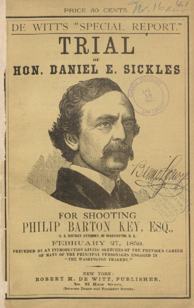 Sickles surrendered and went on trial for premeditated murder, obtaining the legal services of future Secretary of War Edwin M. Stanton. By the time the defense rested, Washington newspapers were praising Sickles for “saving all the ladies of Washington from this rogue named Key”.