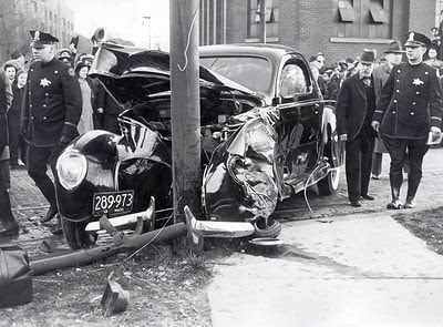 Al Capone was convicted of tax evasion in 1931 and sentenced to Alcatraz, becoming eligible for early release in 1939 due to syphilitic dementia. A week before the gangster’s release, EJ left his office at Sportsman’s Park racetrack in Cicero, driving his black ’39 Lincoln Zephyr. Two shotgun wielding gunmen pulled alongside, firing a volley of big game slugs and killing O’Hare, instantly. No arrest was ever made.