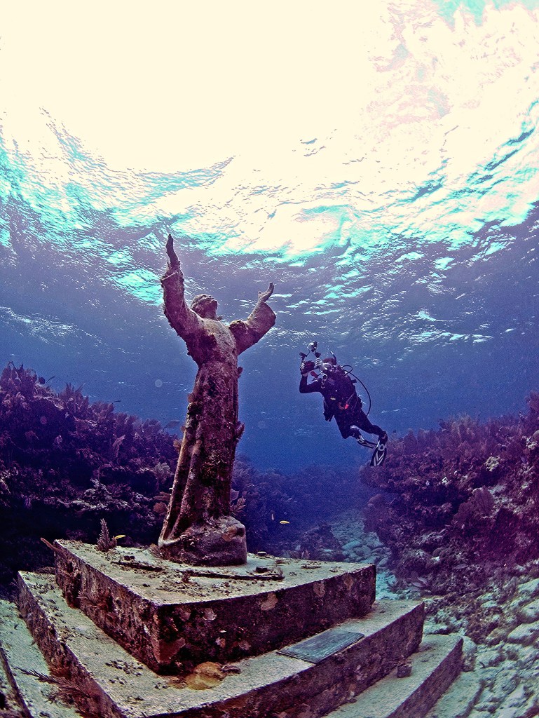 Gonzatti’s fellow diver Duilio Marcante conceived an idea to honor his friend. A monument to a world beneath the waves and dedicated to those who had lost their lives at sea. A 2½ meter tall bronze sculpture, Il Cristo degli Abissi. Christ of the Abyss.