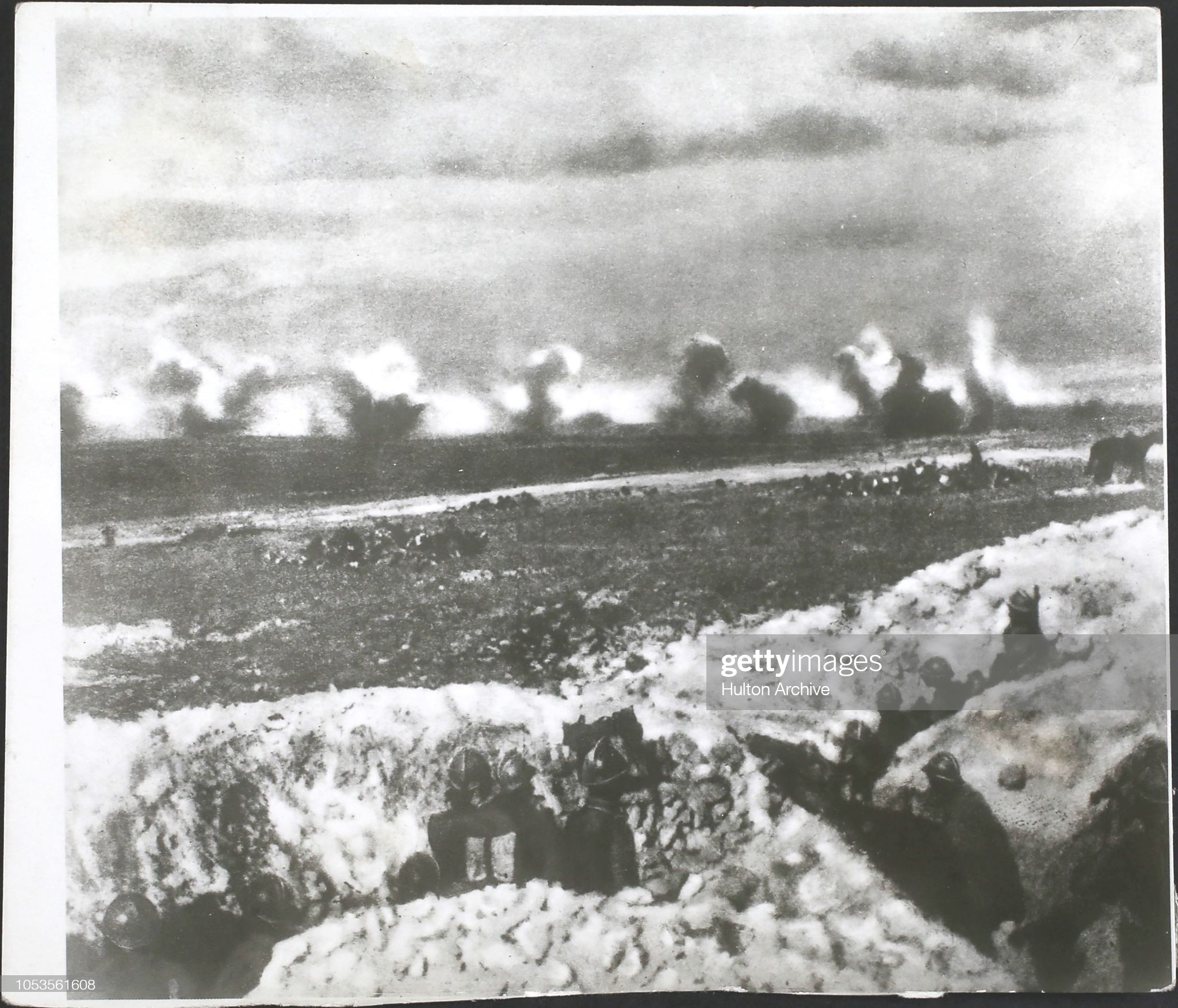 First drum fire in the war, in the Champagne, Lasted 75 hours, from Sept. 22 to 25. Was directed against 20 Miless of the German Front. (Photo by Hulton Archive/Getty Images)